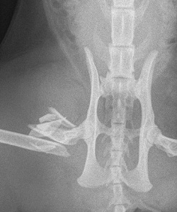 Feline tibia-fibular fracture, minimally invasive repair using a