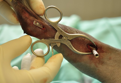 In cats, cruciate ligament rupture it is almost always associated with trauma and will often involve other structures such as rupture of other ligaments around the joint. The surface at the top of the tibia that the femur sits on is more curved in cats than in dogs, such that it does not lend itself quite so well to geometric correction. Rupture of other ligaments around the joint complicates matters. The good news is that most cats respond very favourably to ligament replacement and this would be my preference in most cases.